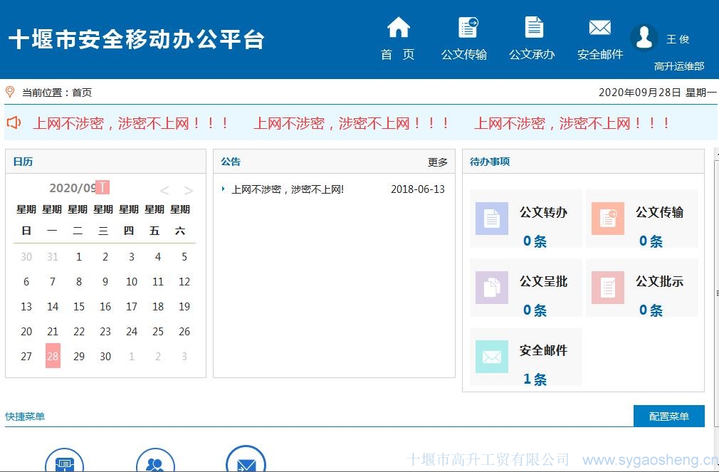 目前該系統(tǒng)已在全市電子政務(wù)內(nèi)網(wǎng)、市委機(jī)關(guān)、竹溪縣、房縣、湖北潛江、安徽蒙城、湖北襄陽等地方應(yīng)用效果較好,尤其是在新冠肺炎疫情期間,成為各級(jí)疫情指揮部和縣、鄉(xiāng)鎮(zhèn)信息快速安全傳遞的主渠道,發(fā)揮出不可替代的優(yōu)勢(shì)作用。我市鄖陽區(qū)、丹江、竹山等地方正在擬定采購部署計(jì)劃,力爭(zhēng)2020年全面鋪開,為我市電子政務(wù)(OA)系統(tǒng)奠定安全基礎(chǔ)。
