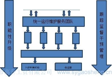 本技術(shù)實(shí)施方案中,由十堰市高升工貿(mào)有限公司(涉密信息系統(tǒng)集成資質(zhì)企業(yè)、十堰市政府采購(gòu)協(xié)議供應(yīng)商、原單位信息化承建商)負(fù)責(zé)網(wǎng)絡(luò)運(yùn)行維護(hù)服務(wù),提供1-3名網(wǎng)絡(luò)技術(shù)專業(yè)人員提供不駐場(chǎng)服務(wù),由負(fù)責(zé)本項(xiàng)目總體運(yùn)行維護(hù)服務(wù)單位統(tǒng)籌調(diào)度,及時(shí)響應(yīng)保障。 整體運(yùn)行維護(hù)服務(wù)框架如下圖所示: